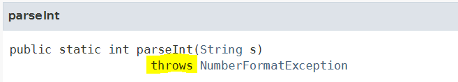 Ex) Integer Class의 parseInt method는 NumberFormatException을 throws하고 있음