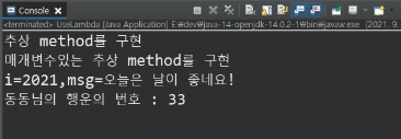 System.out.println("매개변수있는 추상 method를 구현");