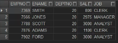 select empno, ename, deptno, sal, job