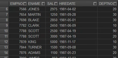 -> where절의 select subquery의 연산결과로 추출된 deptno을 비교하여 필요한 정보가 출력된다!