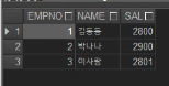 -- 조회컬럼 : 사원번호, 사원명, 부서번호, 연봉, 직무