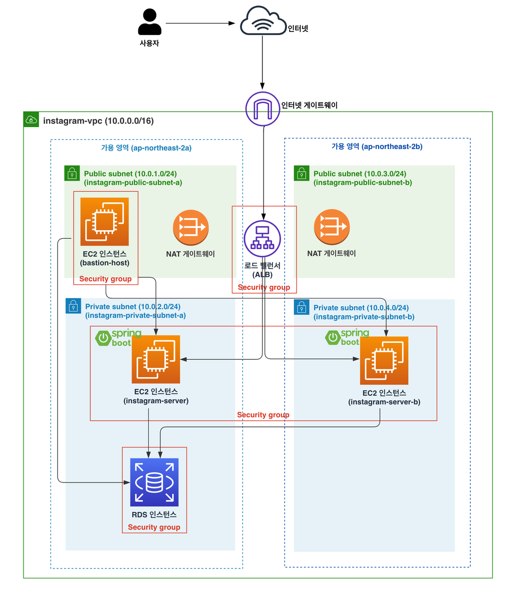 Load Balancer (선택이나 권장):Public Subnet에 ALB 생성 후 서버들과 연결.
