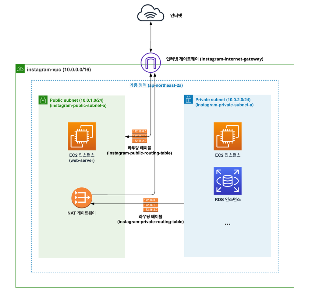 - pub/pri 서브넷을 생성한 뒤 pub에 igw를 연결하고 나서, 별도의 설정을 위한 라우팅테이블을 별도로 생성하는 것을 추천
