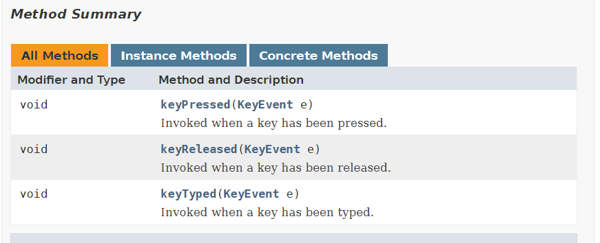 - KeyAdapter Class는 미리 KeyListener Interface를 구현해놓았기 때문에